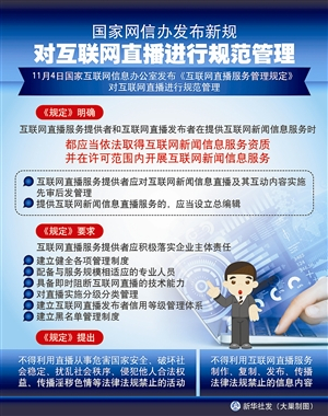 4日,国家互联网信息办公室发布《互联网直播服务管理规定》,重拳整治网络直播乱象,促进网络直播健康发展。为何出台这项新规?新规有哪些具体措施?各方有何回应?