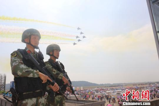 本届航展共有来自42个国家和地区的700余家展商参展,共设11个展馆,室内外展示面积达41万平方米,日均参观人数超8万人,各类参展飞机151架。除了中、俄、英、巴四国飞行表演队备受瞩目外,担负处突反恐任务的武警官兵也成了一道亮丽的风景线。