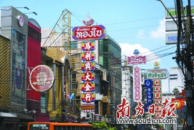曼谷最著名的唐人街——耀华力路,中国店铺招牌密密麻麻。