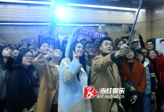 赵志伟、李莎旻子和众多学生玩自拍。