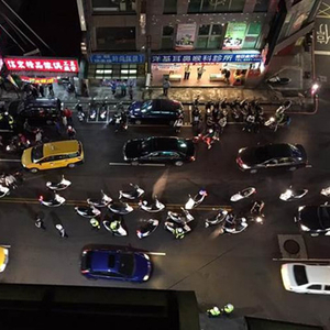 9日新北市三重区正义北路晚上10点多传出集体打群架事件,有网友提供影片表示,现场疑似因车祸纠纷而引发斗殴,一名摩托车骑士左转撞上一名抱小孩过马路的父亲,骑士因口气很凶,引发许多人前来追打,警方获报到场维持秩序,斗殴的激烈场面被网友拍下。