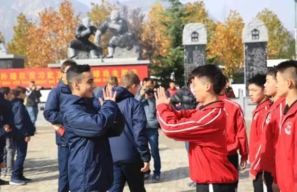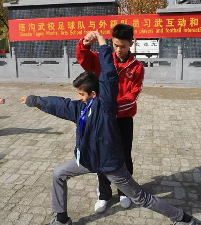 11月10日,2016“一带一路”中国·郑州青少年校园足球文化交流暨国际足球邀请赛系列活动“看少林足球·品武术魅力”在塔沟武校举行,来自德国的米海姆·科尔利希U12、U15足球队、意大利波坦察市青少年足球队、韩国漆谷青少年足球俱乐部以及来自中国郑州、西安、乌鲁木齐、大连、长沙的12支青少年足球队200余名运动员进行了快乐的武术体验。