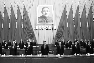 昨日,纪念孙中山先生诞辰150周年大会在北京人民大会堂隆重举行。习近平、李克强、俞正声、刘云山、王岐山、张高丽等出席大会。新华社发