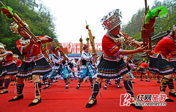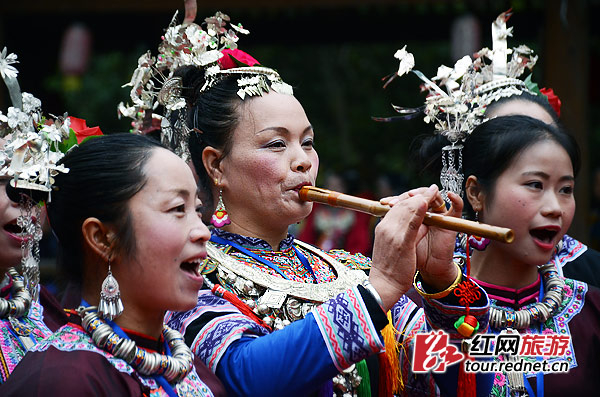 原标题:湖南通道:侗族同胞赛芦笙比美食庆丰收(图)