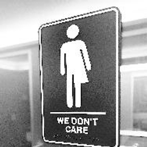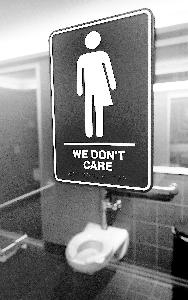 美国北卡罗来纳州一处酒店厕所外贴着写有“我们不在乎”的标识以抗议“歧视跨性别者”。有关跨性别者平权问题在美国涉及“政治正确”。