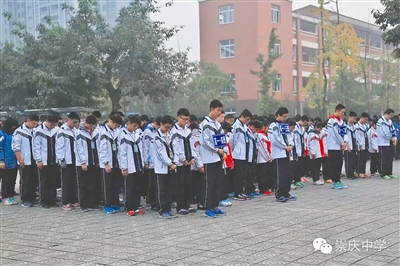 崇庆中学师生在升旗仪式上悼念余旭