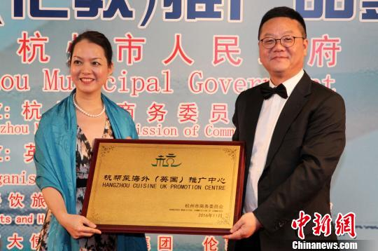 当地时间11月14日,杭州美食国际推广交流活动在伦敦举行,杭州市在伦敦设立杭帮菜海外(英国)推广中心。 周兆军 摄
