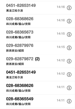 与此同时,店主向张女士发动了“呼死你”攻击,张女士向记者出示的通话记录显示,每天都会有来自四川、陕西、贵州,甚至黑龙江等不同地区的区号打进来,接听后,要么没有声音,要么威胁,“你在家吗?我马上来收拾你。”