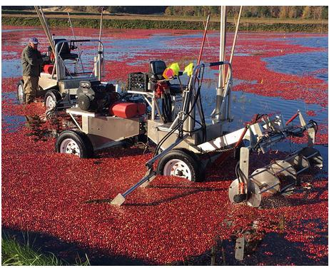 蔓越莓只能生长于拥有酸性泥炭土的沼泽或湿地中。在每年秋天,通常是九月到十一月初,它们会变成深红色,此时便是蔓越莓的收获季。