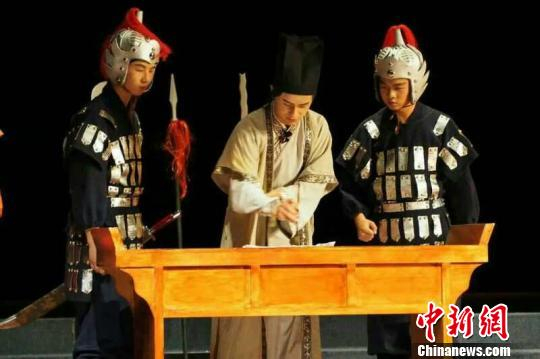 中国首台以王阳明为题材的大型原创历史话剧《王阳明》19日登上中国校园戏剧节舞台。 芊烨 摄