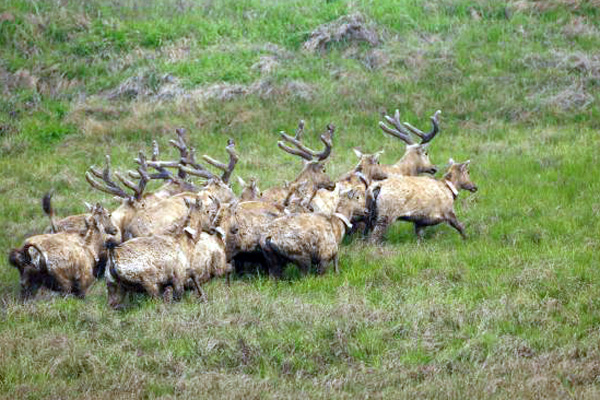 生活在东洞庭湖国家级自然保护区的麋鹿。