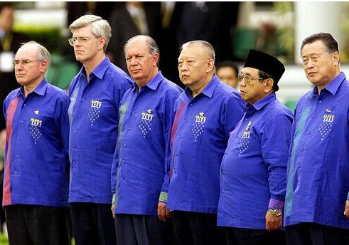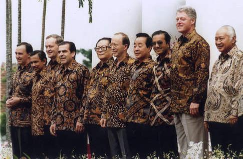 1994年APEC峰会,时任印尼总统苏哈托量体裁衣,为每位领导人送了一件“Batik”蜡染衬衣。自本届之后,大部分会议主办国都依此惯例,赠予与会领导人本国特色服装。