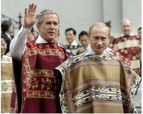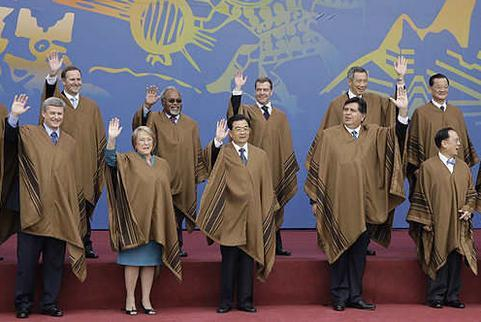 2008年,APEC峰会首次来到秘鲁利马。“彭丘”(poncho)是秘鲁安第斯山区印地安人的传统民族服装,一般长1-2米,宽0.5-1米, 正中有圆洞,类似于一块套头的毯子,穿戴极其方便。会议中,领导人均穿素色彭丘,素色更具传统特色、更适合正式场合。没人知道领导人穿的“彭丘”价值几 何,但据说,每克幼年羊驼毛的价格与黄金相等。
