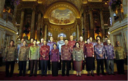 泰国为与会领导人制作了特色的民族服装,面料为泰丝,这种织入金线的丝绸显示了泰国丝织行业最高超的技术,一直是皇室的专属服装,直到二十世纪才允许平民穿着,每件服装价格2700美元。