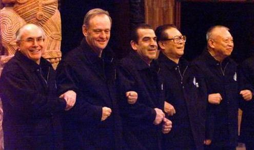 在温哥华,时任加拿大总理克雷蒂安送给客人们每人一件帅气的飞行员款牛皮夹克。