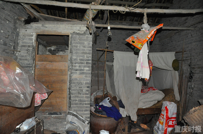 经民警现场勘查发现,刘大爷与弟弟刘书坤共用堂屋、厨房和厕所,两人的卧室相邻,中间的墙壁由石头垒砌,而墙壁角落隐秘处却凿了一个洞,洞口大小刚好能容纳一人出入。
