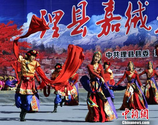 中新网理县11月25日电(安源 龚靖芸)25日,2016年四川红叶生态旅游节(主会场)暨米亚罗红叶温泉节系列活动之嘉绒若木纽节在四川理县米亚罗风情小镇举行,当地藏族民众载歌载舞欢庆佳节。