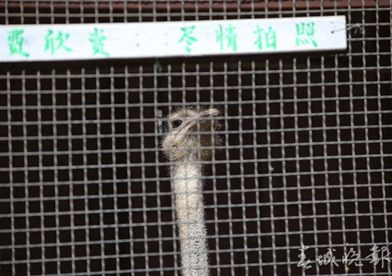 笼舍上都挂着牌子,如“梅花鹿”“鸵鸟”,还有“请勿触摸”“免费欣赏 尽情拍照”字样。