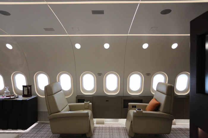 787梦想商务机是目前全球唯一一架投入运营的787-8型公务机,这架2014年出厂的飞机,在离开波音的生产线之后,直接飞赴飞机改装厂,由法国顶级设计师和航空设备专家们进行了长达2年半的客舱内部设计和装潢。