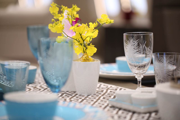 在客厅,拥有300多年历史的德国顶级瓷器品牌Meissen,拥有180年历史、世界最珍贵的威士忌MACALLAN也纷纷亮相。此外还有意大利顶级奢侈品牌FENDI、世界钟王Erwin Sattler、法国国宝级水晶品牌Baccarat巴卡拉,以及由《绝对艺术》杂志带来的中国当代雕塑艺术。预计未来,联合销售也可能成为这架公务机的盈利模式之一。