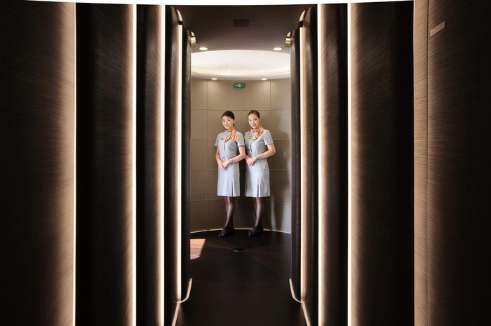 由于使用了隔音材料,使得飞行过程中,房间里的噪音只有48分贝,而普通787飞机客舱噪音值大约是70-72分贝。