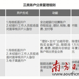 在新政下,个人银行卡账户分为Ⅰ类、Ⅱ类、Ⅲ类账户,其中最令人关注的是对于Ⅰ类账户开户的限制,以及三种账户的分类管理方式。