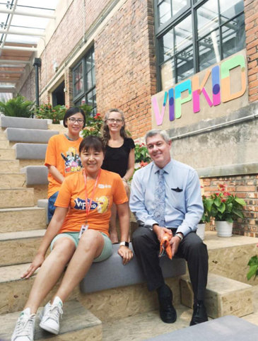 VIPKID创始人兼CEO米雯娟、VIPKID联合创始人陈媛、TESOL国际全球职业发展负责人Sarah Sahr和北德州大学的Fernando FLeurquin博士在VIPKID合影留念