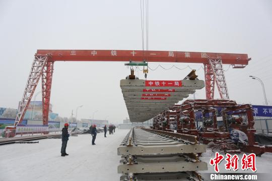 图为,首节轨排吊装 张鑫 摄