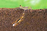 昆虫在过冬前的准备中,还有一次改变趋性的过程。昆虫属于变温动物,体温随气温的变化而改变,天热了就向阴凉的地方躲,天冷就向暖和的地方跑。这种向暖和地方去的现象就是趋温性,是昆虫度过严冬的一种重要本能。例如专门取食蚜虫的异色瓢虫,天气变冷时,它们就争先恐后地飞到墙缝、草堆以及仓库等较暖和的地方过冬。在土壤中生活并过冬的叩头虫的幼虫(金针虫),天气变冷时,它们便向着土壤深处钻,这是因为10厘米以下深处的土壤温度要比大气温度高7℃以上,20厘米的深处要高10℃以上。当土壤深度达60~90厘米时,温度昼夜不变;深度达12米时,保持着不冷不热的状态。虽然大部分昆虫不会钻那么深,但钻入到10~15厘米下还是较为常见的。由于土壤温度比大气温度高,昆虫当然就不容易被冻死了。