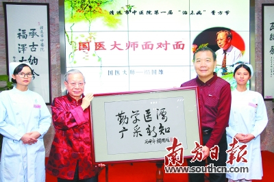 国医大师禤国维(左二)在膏方节上通过与广大市民面对面,亲切交流,传授脱发的中医保健知识和临床诊疗经验,并向市中医院中医人殷殷寄语。