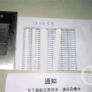 记者在陈先生所在小区相邻的一个高层小区走访时,该小区保安称,他们小区的水费等催款单都是贴在每个用户的大门上,而且贴水费催款通知单还有一些不同。