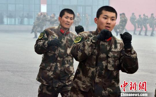 6日的武警交通第二总队教导队训练场,让人感到有些冷冽。王贺与王祥兄弟俩和其他战友一起进行着擒敌术、体能等训练。
