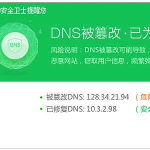 为此,360安全卫士推出的DNS防护功能,就是主动在后台保护用户安全,一旦发现DNS被篡改为恶意IP的情况,360安全卫士主动出击,为用户修复为安全的DNS,保证用户安全正常上网,避免用户造成财产的损失。