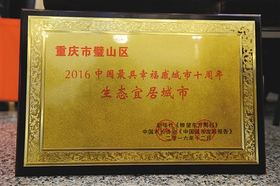 近日,“中国幸福城市可持续发展国际论坛”在北京人民大会堂举行,论坛发布了2016年“中国最具幸福感城市”、“中国城市人民获得感案例”和“中国生态宜居城市”名单。其中,唯一一个“中国生态宜居城市”荣誉被璧山区摘得。