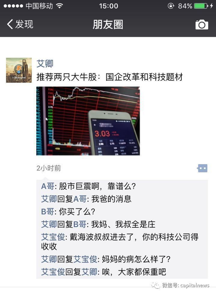 除了儿子艾卿,艾宝俊的妻子与弟弟,也是上海商界的活跃人物。艾宝俊分管信息产业,艾卿成立了科技公司。在艾宝俊分管的国资领域,他的弟弟与妻子也有较深介入,在股市上尤其在一些国企改革题材股上斩获颇丰。艾宝俊落马前一周,其妻子过世。在艾宝俊被带往北京的同一天,其子艾卿、其弟艾宝魁接受调查。