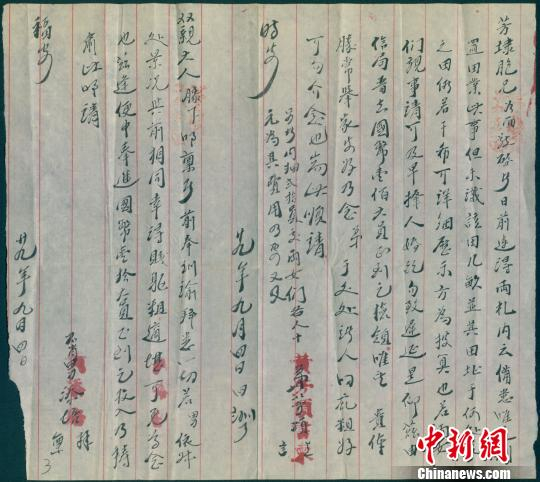 1940年印尼垄川华侨黄芳顶关于购置田产、女儿婚配等事宜的侨批 (福建省档案馆 馆藏)。 叶建强 摄