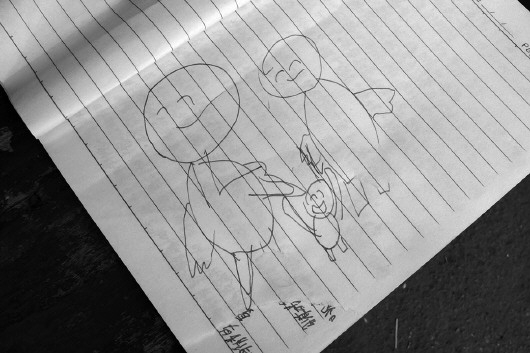 ▲在遗书的后一页,张富画了一个三口之家的简笔画。