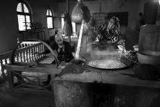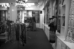 和田市吉亚乡是著名的丝绸商品产地,来到艾特莱斯丝绸手工作坊门前,和想象有点落差,并不是真正的民间作坊,而是花园式的一个大院子。我们刚下车,就有一个身穿丝绸服饰的维吾尔族女孩出来,主动带我们参观了生产流程。在抽丝房里,至今还保持着传统手工工艺,被柴火烧热的开水锅里煮着白白的蚕茧,一个女工正在抽丝,千头丝伸向手心,另一个女工则在旁边摇着纺车。在织丝作坊里,有三个维吾尔族年过花甲的老人精心工作,随着梭子的流动,一道道花儿绽放出美丽的灿烂。在展厅里,各种颜色商品诱惑着游客的眼球,尤其对年龄大一点的人而言,作坊式的手工生产,一切都是旧时的模样,往事的追忆使人欲罢不能,只有掏腰包来留住已逝的过去。和田丝绸质地柔软,轻盈飘逸,许多图案取材于日常生活中的细节且富于变化,色泽十分鲜丽,无论是披在头上还是穿在身上,都会在大漠戈壁的天地间,飘动起一道亮丽的风景线。