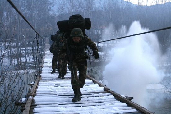 12月7日~13日,武警特警学院猎鹰突击队在燕山深处实施了一次特殊的“魔鬼周”训练。这次训练按照“为贯彻落实武警部队首长组织基于效果的‘魔鬼周’训练指示精神”,结合该部队担负的特殊反恐作战任务,以冬季野外反恐行动为链条,突出山地丛林战、山地狙击战、雪地追逃战、高地冲击战、端窝清剿战等行动课题连续强训,7天内,部队全部露宿雪地,共完成丛林地搜剿、居民地清剿、深坑脱逃、穿越火线、隧洞潜行、穿越死亡峡谷、伪装潜行、山地伏击、抗寒训练、山洞捕歼、高地冲击等19个课目。