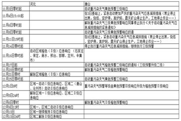 在经历了11月底的连续重霾之后,12月15日,北京市空气重污染应急指挥部发布空气重污染红色预警,这是北京自2013年《北京市空气重污染应急预案》通过以来首次启动红色预警。紧随其后,河北多地迅速启动空气污染Ⅰ级应急响应。其中昨日晚间,唐山和邯郸等市先后发布紧急通知,率先启动应急响应机制。