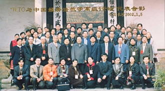 这是一张2002年1月5日上午在岳麓书院拍摄的“WTO与中国经济法教学高级论坛”开幕式后的合影照。会议几乎汇聚了中国顶尖的经济法学理论界的专家学者,时任湖南省副省长唐之享亲自到会指导,湖南大学主要领导致辞,对与会代表热烈欢迎并介绍了湖南大学的发展情况,中国经济法学研究会会长杨紫烜@教授发表了热情洋溢的讲话。我作为会议的发起单位的代表,也作了“适应经济全球化的需要,探索经济法教学改革和发展的新路子” 的主旨发言,并得到了唐之享副省长的赞许。开幕式取得了圆满成功,这本是一件值得高兴的事,但不知怎的,我心虽释重负,终于完成了一件大事,但在脸上仍看不出轻松高兴的感觉——你看照片上的我,没有笑容,略显憔悴,连会议代表证带反了也没察觉。个中原委,当时、乃至现在很少有人知道。
