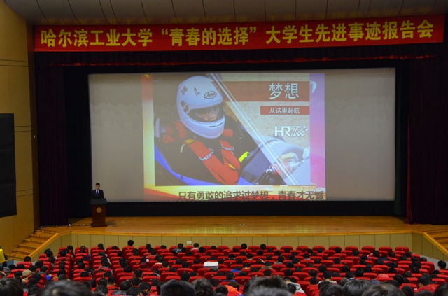 哈工大报讯(孙锐 蔡萌萌 王钐 吴玉菡等/文)近日,为贯彻落实全国高校思想政治工作会议精神,引领全体2016级本科新生自觉把个人的理想追求融入国家和民族的事业中,自觉把远大抱负落实到实际行动中,让勤奋学习成为青春飞扬的动力,让增长本领成为青春搏击的能量。“青春的选择”大学生先进事迹报告会在二校区举行。在4天的时间里,在学习学业、创新创业、自强自立、志愿服务、参军报国等领域取得突出成绩的6个学生先进集体、10名优秀个人向大一新生讲述和分享了他们的青春奋斗故事。