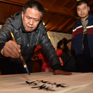 书法家现场创作出书法精品。