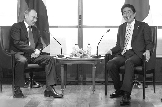 安倍把与普京进行领土问题交涉的会谈场所选在老家山口县长门市的温泉旅馆。《日本经济新闻》报道,安倍表示,要与普京总统“在山川旁的温泉,在舒适的氛围中,在夜的寂静中,慢慢地交涉(领土问题)”。然而,访日前普京已就领土问题回应日本记者称,俄日间不存在领土问题,只是日方以为存在而已。