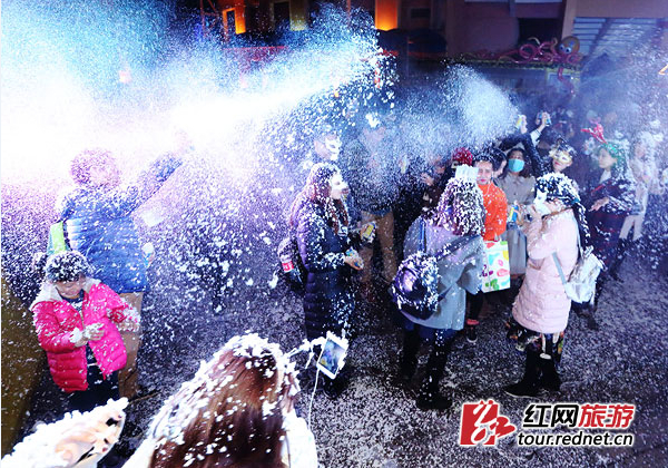 12月23日-12月31日,长沙世界之窗将举行圣诞主题“万人喷雪大战”,园区在12月18日晚进行预演。