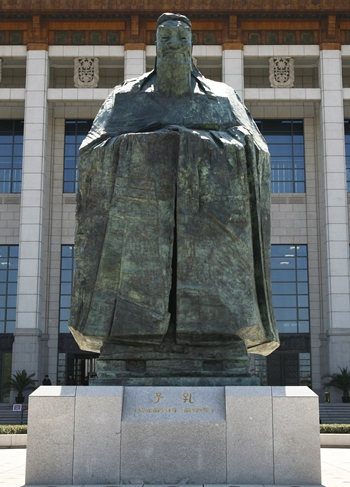 2011年4月3日,吴为山创作的孔子雕像立于国家博物馆前。