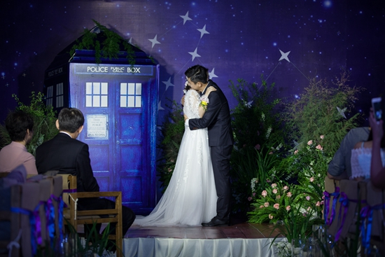 我们要一场“星空下的花园”婚礼。我最喜欢的科幻剧集《神秘博士》里,小女孩艾米就是在自家的花园里,等来了蓝色的飞天警察用的电话亭。那是神秘博士穿梭时空的工具,他将带着她展开冒险。