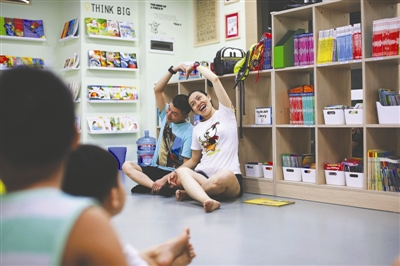 丁飞、崔馨予和孩子们进行现场活动