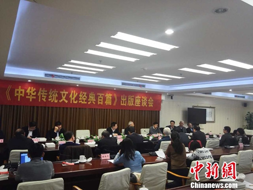 中新网北京12月22日电(上官云)22日,由国务院参事室、中央文史研究馆和中华书局联合主办的《中华传统文化经典百篇》出版座谈会在北京召开。会上,中央文史研究馆馆长袁行霈、北京大学中文系教授刘玉才等专家就该书的选目、体例等进行了讨论。
