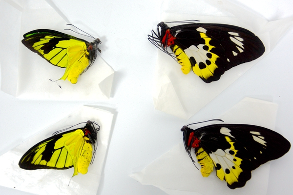 11月25日,大连海关和辽宁出入境检验检疫局在邮递渠道联合查获两对共计四只罕见的蝴蝶标本——极乐鸟翼凤蝶指名亚种标本。